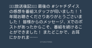 皆様からのメッセージ、Xでのポストがあったからこそ、番組を続けることができました!