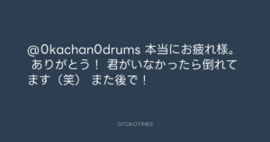 青山英樹 @aoyama_hideki – 4:00・2011年1月31日 2011 1/31 青山英樹 2011-01-31 @0kachan0drums 本当にお疲れ様。 ありがとう! 君がいなかったら倒れてます(笑) また後で! Source:https://x.com/aoyama_hideki/status/317889134754... text X Post 青山英樹 青山英樹 この記事が気に入ったら フォローしてね! Follow @OtokoTimes1988 よかったらシェアしてね! URLをコピーしました! 青山英樹 @aoyama_hideki - 2:40・2011年1月31日 寺岡呼人 @yohito_teraoka - 19:27・2011年1月31日 関連記事 Artist 青山英樹 1986.08.29