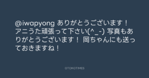青山英樹 @aoyama_hideki – 21:55・2011年1月31日 2011 1/31 青山英樹 2011-01-31 @iwapyong ありがとうございます! アニうた頑張って下さい(^_-) 写真もありがとうございます! 岡ちゃんにも送っておきますね! Source:https://x.com/aoyama_hideki/status/320595113174... text X Post 青山英樹 青山英樹 この記事が気に入ったら フォローしてね! Follow @OtokoTimes1988 よかったらシェアしてね! URLをコピーしました! 青山英樹 @aoyama_hideki - 20:08・2011年1月31日 青山英樹 @aoyama_hideki - 2:21・2011年2月1日 関連記事 Artist 青山英樹 1986.08.29