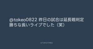 青山英樹 @aoyama_hideki – 10:37・2011年2月27日 2011 2/27 青山英樹 2011-02-27 @takeo0822 昨日の試合は延長戦判定勝ちな長いライブでした(笑) Source:https://x.com/aoyama_hideki/status/416732269877... text X Post 青山英樹 青山英樹 この記事が気に入ったら フォローしてね! Follow @OtokoTimes1988 よかったらシェアしてね! URLをコピーしました! 青山英樹 @aoyama_hideki - 10:35・2011年2月27日 青山英樹 @aoyama_hideki - 10:38・2011年2月27日 関連記事 Artist 青山英樹 1986.08.29