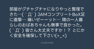 隣の一人暮らしのおばあちゃんも無事で良かった。(´Д` )