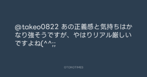 青山英樹 @aoyama_hideki – 21:21・2011年3月16日 2011 3/16 青山英樹 2011-03-16 @takeo0822 あの正義感と気持ちはかなり強そうですが、やはりリアル厳しいですよね(^^;; Source:https://x.com/aoyama_hideki/status/479958982356... text X Post 青山英樹 青山英樹 この記事が気に入ったら フォローしてね! Follow @OtokoTimes1988 よかったらシェアしてね! URLをコピーしました! 青山英樹 @aoyama_hideki - 21:07・2011年3月16日 青山英樹 @aoyama_hideki - 20:10・2011年3月18日 関連記事 Artist 青山英樹 1986.08.29
