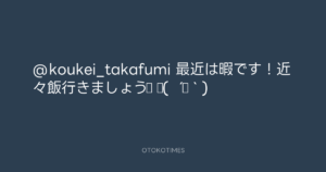 青山英樹 @aoyama_hideki – 2:35・2011年4月24日 2011 4/24 青山英樹 2011-04-24 @koukei_takafumi 最近は暇です!近々飯行きましょう♫ ♪( ´▽`) Source:https://x.com/aoyama_hideki/status/618457883928... text X Post 青山英樹 青山英樹 この記事が気に入ったら フォローしてね! Follow @OtokoTimes1988 よかったらシェアしてね! URLをコピーしました! 寺岡呼人 @yohito_teraoka - 23:01・2011年4月23日 寺岡呼人 @yohito_teraoka - 14:10・2011年4月24日 関連記事 Artist 青山英樹 1986.08.29