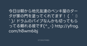 青山英樹 @aoyama_hideki – 11:15・2011年5月1日 2011 5/01 青山英樹 2011-05-01 今日は朝から地元友達のペンキ屋のタータが家の門を塗ってくれてます! ( ´ ▽ ` )ノ ドラムのパイプなんかも切ってもらってる頼れる彼です(^_-) http://yfrog.com/h8wm6ibj Source:https://x.com/aoyama_hideki/status/645131380574... text X Post 青山英樹 青山英樹 この記事が気に入ったら フォローしてね! Follow @OtokoTimes1988 よかったらシェアしてね! URLをコピーしました! Koyo Maeda @koyomaeda - 9:41・2011年5月1日 Koyo Maeda @koyomaeda - 13:52・2011年5月1日 関連記事 Artist 青山英樹 1986.08.29