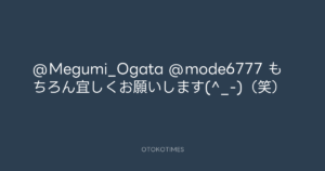 青山英樹 @aoyama_hideki – 0:00・2011年5月10日 2011 5/10 青山英樹 2011-05-10 @Megumi_Ogata @mode6777 もちろん宜しくお願いします(^_-)(笑) Source:https://x.com/aoyama_hideki/status/676049416189... text X Post 青山英樹 青山英樹 この記事が気に入ったら フォローしてね! Follow @OtokoTimes1988 よかったらシェアしてね! URLをコピーしました! 青山英樹 @aoyama_hideki - 23:57・2011年5月9日 青山英樹 @aoyama_hideki - 0:21・2011年5月10日 関連記事 Artist 青山英樹 1986.08.29