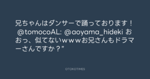 青山英樹 @aoyama_hideki – 13:49・2011年5月16日 2011 5/16 青山英樹 2011-05-16 兄ちゃんはダンサーで踊っております! @tomocoAL: @aoyama_hideki おおっ、似てないwwwお兄さんもドラマーさんですか?” Source:https://x.com/aoyama_hideki/status/699878558915... text X Post 青山英樹 青山英樹 この記事が気に入ったら フォローしてね! Follow @OtokoTimes1988 よかったらシェアしてね! URLをコピーしました! 青山英樹 @aoyama_hideki - 13:18・2011年5月16日 青山英樹 @aoyama_hideki - 13:51・2011年5月16日 関連記事 Artist 青山英樹 1986.08.29