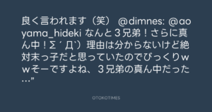 青山英樹 @aoyama_hideki – 13:51・2011年5月16日 2011 5/16 青山英樹 2011-05-16 良く言われます(笑) @dimnes: @aoyama_hideki なんと3兄弟!さらに真ん中!Σ´Д`)理由は分からないけど絶対末っ子だと思っていたのでびっくりwwそーですよね、3兄弟の真ん中だった…” Source:https://x.com/aoyama_hideki/status/699882289832... text X Post 青山英樹 青山英樹 この記事が気に入ったら フォローしてね! Follow @OtokoTimes1988 よかったらシェアしてね! URLをコピーしました! 青山英樹 @aoyama_hideki - 13:49・2011年5月16日 寺岡呼人 @yohito_teraoka - 18:53・2011年5月16日 関連記事 Artist 青山英樹 1986.08.29
