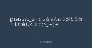@tetsuya_dr てっちゃんありがとうね!また宜しくです(^_−)−☆