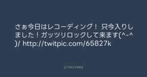 青山英樹 @aoyama_hideki – 13:32・2011年8月13日 2011 8/13 青山英樹 2011-08-13 さぁ今日はレコーディング! 只今入りしました!ガッツリロックして来ます(^-^)/ http://twitpic.com/65827k Source:https://x.com/aoyama_hideki/status/102236171882... text X Post 青山英樹 青山英樹 この記事が気に入ったら フォローしてね! Follow @OtokoTimes1988 よかったらシェアしてね! URLをコピーしました! 寺岡呼人 @yohito_teraoka - 12:02・2011年8月13日 Koyo Maeda @koyomaeda - 7:24・2011年8月14日 関連記事 Artist 青山英樹 1986.08.29