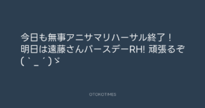 青山英樹 @aoyama_hideki – 20:17・2011年8月17日 2011 8/17 青山英樹 2011-08-17 今日も無事アニサマリハーサル終了! 明日は遠藤さんバースデーRH! 頑張るぞ(`_´)ゞ Source:https://x.com/aoyama_hideki/status/103787517408... text X Post 青山英樹 青山英樹 この記事が気に入ったら フォローしてね! Follow @OtokoTimes1988 よかったらシェアしてね! URLをコピーしました! Koyo Maeda @koyomaeda - 12:32・2011年8月17日 青山英樹 @aoyama_hideki - 20:35・2011年8月17日 関連記事 Artist 青山英樹 1986.08.29