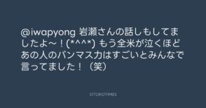 青山英樹 @aoyama_hideki – 1:05・2011年9月3日 2011 9/03 青山英樹 2011-09-03 @iwapyong 岩瀬さんの話しもしてましたよ~!(*^^*) もう全米が泣くほどあの人のバンマス力はすごいとみんなで言ってました!(笑) Source:https://x.com/aoyama_hideki/status/109658177590... text X Post 青山英樹 青山英樹 この記事が気に入ったら フォローしてね! Follow @OtokoTimes1988 よかったらシェアしてね! URLをコピーしました! 青山英樹 @aoyama_hideki - 0:26・2011年9月3日 青山英樹 @aoyama_hideki - 1:22・2011年9月3日 関連記事 Artist 青山英樹 1986.08.29