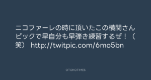 青山英樹 @aoyama_hideki – 15:18・2011年9月18日 2011 9/18 青山英樹 2011-09-18 ニコファーレの時に頂いたこの横関さんピックで早自分も早弾き練習するぜ!(笑) http://twitpic.com/6mo5bn Source:https://x.com/aoyama_hideki/status/115308803456... text X Post 青山英樹 青山英樹 この記事が気に入ったら フォローしてね! Follow @OtokoTimes1988 よかったらシェアしてね! URLをコピーしました! Koyo Maeda @koyomaeda - 12:51・2011年9月18日 青山英樹 @aoyama_hideki - 15:22・2011年9月18日 関連記事 Artist 青山英樹 1986.08.29