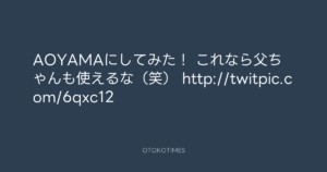 青山英樹 @aoyama_hideki – 21:49・2011年9月26日 2011 9/26 青山英樹 2011-09-26 AOYAMAにしてみた! これなら父ちゃんも使えるな(笑) http://twitpic.com/6qxc12 Source:https://x.com/aoyama_hideki/status/118306232888... text X Post 青山英樹 青山英樹 この記事が気に入ったら フォローしてね! Follow @OtokoTimes1988 よかったらシェアしてね! URLをコピーしました! 寺岡呼人 @yohito_teraoka - 18:36・2011年9月26日 Koyo Maeda @koyomaeda - 0:55・2011年9月27日 関連記事 Artist 青山英樹 1986.08.29