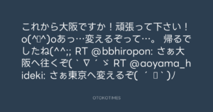 RT @bbhiropon: さぁ大阪へ往くぞ(`∇´ゞ RT @aoyama_hideki: さぁ東京へ変えるぞ( ´ ▽ ` )ノ