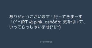 ありがとうございます!行ってきま~す!(^^)RT @pink_ash666: 気を付けて、いってらっしゃいませ(*’▽’*)