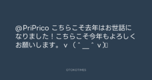 @PriPrico こちらこそ去年はお世話になりました!こちらこそ今年もよろしくお願いします。v(^_^v)♪