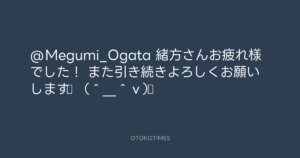 青山英樹 @aoyama_hideki – 3:37・2012年1月13日 2012 1/13 青山英樹 2012-01-13 @Megumi_Ogata 緒方さんお疲れ様でした! また引き続きよろしくお願いします☆ (^_^v)♪ Source:https://x.com/aoyama_hideki/status/157531739294... text X Post 青山英樹 青山英樹 この記事が気に入ったら フォローしてね! Follow @OtokoTimes1988 よかったらシェアしてね! URLをコピーしました! 青山英樹 @aoyama_hideki - 3:34・2012年1月13日 寺岡呼人 @yohito_teraoka - 10:21・2012年1月13日 関連記事 Artist 青山英樹 1986.08.29