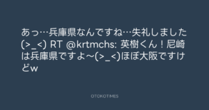 RT @krtmchs: 英樹くん!尼崎は兵庫県ですよ~(>_<)ほぼ大阪ですけどw
