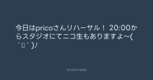 青山英樹 @aoyama_hideki – 13:36・2012年2月14日 2012 2/14 青山英樹 2012-02-14 今日はpricoさんリハーサル! 20:00からスタジオにてニコ生もありますよ~( ´ ▽ ` )ノ Source:https://x.com/aoyama_hideki/status/169278877275... text X Post 青山英樹 青山英樹 この記事が気に入ったら フォローしてね! Follow @OtokoTimes1988 よかったらシェアしてね! URLをコピーしました! 青山英樹 @aoyama_hideki - 23:21・2012年2月13日 青山英樹 @aoyama_hideki - 23:44・2012年2月14日 関連記事 Artist 青山英樹 1986.08.29