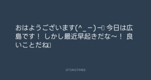 青山英樹 @aoyama_hideki – 7:37・2012年4月13日 2012 4/13 青山英樹 2012-04-13 おはようございます(^_−)−☆ 今日は広島です! しかし最近早起きだな~! 良いことだね☆ Source:https://x.com/aoyama_hideki/status/190569329241... text X Post 青山英樹 青山英樹 この記事が気に入ったら フォローしてね! Follow @OtokoTimes1988 よかったらシェアしてね! URLをコピーしました! 寺岡呼人 @yohito_teraoka - 21:19・2012年4月12日 青山英樹 @aoyama_hideki - 23:07・2012年4月13日 関連記事 Artist 青山英樹 1986.08.29