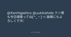 青山英樹 @aoyama_hideki – 14:18・2012年4月21日 2012 4/21 青山英樹 2012-04-21 @KenHigeshiro @yukikishida ケン君も今日頑張ってね(^_−)−☆ 皆様にもよろしくです☆ Source:https://x.com/aoyama_hideki/status/193569496638... text X Post 青山英樹 青山英樹 この記事が気に入ったら フォローしてね! Follow @OtokoTimes1988 よかったらシェアしてね! URLをコピーしました! 青山英樹 @aoyama_hideki - 14:17・2012年4月21日 寺岡呼人 @yohito_teraoka - 14:45・2012年4月21日 関連記事 Artist 青山英樹 1986.08.29