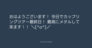 青山英樹 @aoyama_hideki – 11:17・2012年6月16日 2012 6/16 青山英樹 2012-06-16 おはようございます! 今日でカップリングツアー最終日! 最高にメタルして来ます!! \(^o^)/ Source:https://x.com/aoyama_hideki/status/213817570179... text X Post 青山英樹 青山英樹 この記事が気に入ったら フォローしてね! Follow @OtokoTimes1988 よかったらシェアしてね! URLをコピーしました! 寺岡呼人 @yohito_teraoka - 10:50・2012年6月16日 寺岡 呼人 @yohitoteraoka - 14:10・2012年6月16日(IG post) 関連記事 Artist 青山英樹 1986.08.29