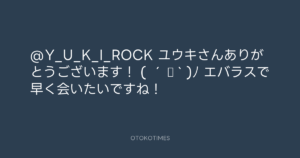 青山英樹 @aoyama_hideki – 14:53・2012年8月29日 2012 8/29 青山英樹 2012-08-29 @Y_U_K_I_ROCK ユウキさんありがとうございます! ( ´ ▽ ` )ノ エバラスで早く会いたいですね! Source:https://x.com/aoyama_hideki/status/240688642845... text X Post 青山英樹 青山英樹 この記事が気に入ったら フォローしてね! Follow @OtokoTimes1988 よかったらシェアしてね! URLをコピーしました! 青山英樹 @aoyama_hideki - 14:49・2012年8月29日 青山英樹 @aoyama_hideki - 15:08・2012年8月29日 関連記事 Artist 青山英樹 1986.08.29