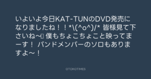 青山英樹 @aoyama_hideki – 22:56・2012年11月21日 2012 11/21 青山英樹 2012-11-21 いよいよ今日KAT-TUNのDVD発売になりましたね!!*\(^o^)/* 皆様見て下さいね~☆ 僕もちょこちょこと映ってまーす! バンドメンバーのソロもありますよ~! Source:https://x.com/aoyama_hideki/status/271250701089... text X Post 青山英樹 青山英樹 この記事が気に入ったら フォローしてね! Follow @OtokoTimes1988 よかったらシェアしてね! URLをコピーしました! 寺岡呼人 @yohito_teraoka - 15:53・2012年11月21日 青山英樹 @aoyama_hideki - 23:02・2012年11月21日 関連記事 Artist 青山英樹 1986.08.29