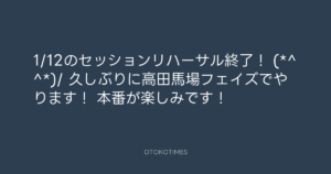 青山英樹 @aoyama_hideki – 21:12・2013年1月8日 2013 1/08 青山英樹 2013-01-08 1/12のセッションリハーサル終了! (*^^*)/ 久しぶりに高田馬場フェイズでやります! 本番が楽しみです! Source:https://x.com/aoyama_hideki/status/288619085795... text X Post 青山英樹 青山英樹 この記事が気に入ったら フォローしてね! Follow @OtokoTimes1988 よかったらシェアしてね! URLをコピーしました! Koyo Maeda @koyomaeda - 14:17・2013年1月8日 青山英樹 @aoyama_hideki - 21:47・2013年1月8日 関連記事 Artist 青山英樹 1986.08.29