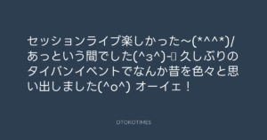 青山英樹 @aoyama_hideki – 23:09・2013年1月12日 2013 1/12 青山英樹 2013-01-12 セッションライブ楽しかった~(*^^*)/ あっという間でした(^з^)-☆ 久しぶりのタイバンイベントでなんか昔を色々と思い出しました(^o^) オーイェ! Source:https://x.com/aoyama_hideki/status/290098137849... text X Post 青山英樹 青山英樹 この記事が気に入ったら フォローしてね! Follow @OtokoTimes1988 よかったらシェアしてね! URLをコピーしました! 青山英樹 @aoyama_hideki - 2:13・2013年1月11日 青山英樹 @aoyama_hideki - 1:13・2013年1月13日 関連記事 Artist 青山英樹 1986.08.29