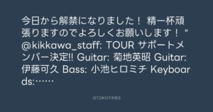 “@kikkawa_staff: TOUR サポートメンバー決定!!