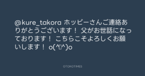 青山英樹 @aoyama_hideki – 16:33・2013年2月15日 2013 2/15 青山英樹 2013-02-15 @kure_takora ホッピーさんご連絡ありがとうございます! 父がお世話になっております! こちらこそよろしくお願いします! o(^▽^)o Source:https://x.com/aoyama_hideki/status/302319798006... text X Post 青山英樹 青山英樹 この記事が気に入ったら フォローしてね! Follow @OtokoTimes1988 よかったらシェアしてね! URLをコピーしました! 寺岡 呼人 @yohitoteraoka - 15:30・2013年2月15日(IG post) 寺岡 呼人 @yohitoteraoka - 18:03・2013年2月15日(IG post) 関連記事 Artist 青山英樹 1986.08.29