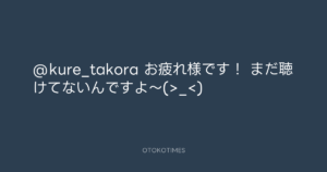 青山英樹 @aoyama_hideki – 21:42・2013年2月16日 2013 2/16 青山英樹 2013-02-16 @kure_takora お疲れ様です! まだ聴けてないんですよ〜(>_<) Source:https://x.com/aoyama_hideki/status/302759791279... text X Post 青山英樹 青山英樹 この記事が気に入ったら フォローしてね! Follow @OtokoTimes1988 よかったらシェアしてね! URLをコピーしました! 寺岡呼人 @yohito_teraoka - 11:55・2013年2月16日 青山英樹 @aoyama_hideki - 23:39・2013年2月16日 関連記事 Artist 青山英樹 1986.08.29