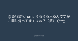 青山英樹 @aoyama_hideki – 17:08・2013年3月10日 2013 3/10 青山英樹 2013-03-10 @SASSYdrums そろそろ入るんですが、既に帰ってますよね?(笑) (^^;; Source:https://x.com/aoyama_hideki/status/310663451427... text X Post 青山英樹 青山英樹 この記事が気に入ったら フォローしてね! Follow @OtokoTimes1988 よかったらシェアしてね! URLをコピーしました! 青山英樹 @aoyama_hideki - 12:39・2013年3月10日 青山英樹 @aoyama_hideki - 17:29・2013年3月10日 関連記事 Artist 青山英樹 1986.08.29