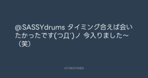 青山英樹 @aoyama_hideki – 17:29・2013年3月10日 2013 3/10 青山英樹 2013-03-10 @SASSYdrums タイミング合えば会いたかったです(つД`)ノ 今入りました〜(笑) Source:https://x.com/aoyama_hideki/status/310668817749... text X Post 青山英樹 青山英樹 この記事が気に入ったら フォローしてね! Follow @OtokoTimes1988 よかったらシェアしてね! URLをコピーしました! 青山英樹 @aoyama_hideki - 17:08・2013年3月10日 青山英樹 @aoyama_hideki - 18:35・2013年3月10日 関連記事 Artist 青山英樹 1986.08.29