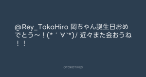 青山英樹 @aoyama_hideki – 12:02・2013年3月24日 2013 3/24 青山英樹 2013-03-24 @Rey_TakaHiro 岡ちゃん誕生日おめでとう〜!(*´∀`*)ノ 近々また会おうね!! Source:https://x.com/aoyama_hideki/status/315659849805... text X Post 青山英樹 青山英樹 この記事が気に入ったら フォローしてね! Follow @OtokoTimes1988 よかったらシェアしてね! URLをコピーしました! 寺岡呼人 @yohito_teraoka - 22:00・2013年3月23日 青山英樹 @aoyama_hideki - 16:18・2013年3月24日 関連記事 Artist 青山英樹 1986.08.29