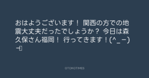 青山英樹 @aoyama_hideki – 10:05・2013年4月13日 2013 4/13 青山英樹 2013-04-13 おはようございます! 関西の方での地震大丈夫だったでしょうか? 今日は森久保さん福岡! 行ってきます!(^_−)−☆ Source:https://x.com/aoyama_hideki/status/322878180648... text X Post 青山英樹 青山英樹 この記事が気に入ったら フォローしてね! Follow @OtokoTimes1988 よかったらシェアしてね! URLをコピーしました! 寺岡呼人 @yohito_teraoka - 14:45・2013年4月12日 寺岡 呼人 @yohitoteraoka - 10:31・2013年4月13日(IG post) 関連記事 Artist 青山英樹 1986.08.29
