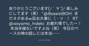 “@BassistBOH: まだネタあるw足お大事に(・ヮ・) RT @aoyama_hideki: お疲れ様でした〜!