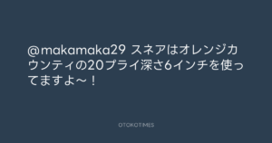 スネアはオレンジカウンティの20プライ深さ6インチを使ってますよ〜!