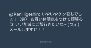 青山英樹 @aoyama_hideki – 2:21・2013年7月12日 2013 7/12 青山英樹 2013-07-12 @KenHigeshiro いやいやケン君もでしょ!(笑) お互い体調気をつけて頑張ろう☆ いい加減にご飯行きたいね…(つд`) メールしますぜ!! Source:https://x.com/aoyama_hideki/status/355376254800... text X Post 青山英樹 青山英樹 この記事が気に入ったら フォローしてね! Follow @OtokoTimes1988 よかったらシェアしてね! URLをコピーしました! 青山英樹 @aoyama_hideki - 1:20・2013年7月12日 寺岡 呼人 @yohitoteraoka - 13:25・2013年7月12日(IG post) 関連記事 Artist 青山英樹 1986.08.29