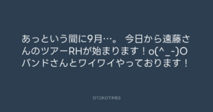 青山英樹 @aoyama_hideki – 13:09・2013年9月2日 2013 9/02 青山英樹 2013-09-02 あっという間に9月…。 今日から遠藤さんのツアーRHが始まります!o(^_-)O バンドさんとワイワイやっております! Source:https://x.com/aoyama_hideki/status/374383468932... text X Post 青山英樹 青山英樹 この記事が気に入ったら フォローしてね! Follow @OtokoTimes1988 よかったらシェアしてね! URLをコピーしました! 寺岡呼人 @yohito_teraoka - 10:04・2013年9月2日 青山英樹 @aoyama_hideki - 0:56・2013年9月3日 関連記事 Artist 青山英樹 1986.08.29