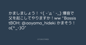 青山英樹 @aoyama_hideki – 22:11・2013年12月8日 2013 12/08 青山英樹 2013-12-08 かましましょう!ヾ( -`д´-,,) 爆音で父を起こしてやりますか!ww “BassistBOH: @aoyama_hideki かまそう!o(^_-)O” Source:https://x.com/aoyama_hideki/status/409671567941... text X Post 青山英樹 青山英樹 この記事が気に入ったら フォローしてね! Follow @OtokoTimes1988 よかったらシェアしてね! URLをコピーしました! 青山英樹 @aoyama_hideki - 22:07・2013年12月8日 青山英樹 @aoyama_hideki - 22:36・2013年12月8日 関連記事 Artist 青山英樹 1986.08.29