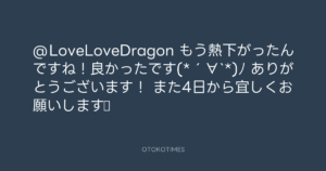 青山英樹 @aoyama_hideki – 15:24・2013年12月29日 2013 12/29 青山英樹 2013-12-29 @LoveLoveDragon もう熱下がったんですね!良かったです(*´∀`*)ノ ありがとうございます! また4日から宜しくお願いします☆ Source:https://x.com/aoyama_hideki/status/417179332675... text X Post 青山英樹 青山英樹 この記事が気に入ったら フォローしてね! Follow @OtokoTimes1988 よかったらシェアしてね! URLをコピーしました! 青山英樹 @aoyama_hideki - 15:16・2013年12月29日 Koyo Maeda @koyomaeda - 16:59・2013年12月29日 関連記事 Artist 青山英樹 1986.08.29
