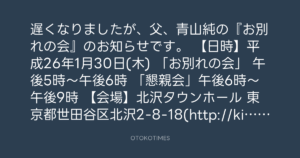 遅くなりましたが、父、青山純の『お別れの会』のお知らせです。