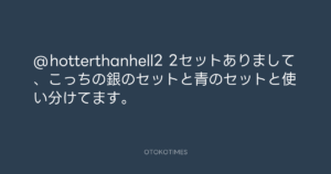2セットありまして、こっちの銀のセットと青のセットと使い分けてます。