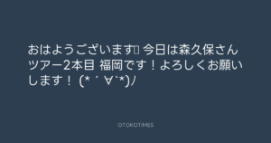 青山英樹 @aoyama_hideki – 8:52・2014年4月13日 2014 4/13 青山英樹 2014-04-13 おはようございます☆ 今日は森久保さんツアー2本目 福岡です!よろしくお願いします! (*´∀`*)ノ Source:https://x.com/aoyama_hideki/status/455131265381... text X Post 青山英樹 青山英樹 この記事が気に入ったら フォローしてね! Follow @OtokoTimes1988 よかったらシェアしてね! URLをコピーしました! Koyo Maeda @koyomaeda - 0:44・2014年4月13日 青山英樹 @aoyama_hideki - 8:56・2014年4月13日 関連記事 Artist 青山英樹 1986.08.29