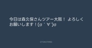青山英樹 @aoyama_hideki – 13:49・2014年5月10日 2014 5/10 青山英樹 2014-05-10 今日は森久保さんツアー大阪! よろしくお願いします!(σ´∀`)σ Source:https://x.com/aoyama_hideki/status/464990703861... text X Post 青山英樹 青山英樹 この記事が気に入ったら フォローしてね! Follow @OtokoTimes1988 よかったらシェアしてね! URLをコピーしました! 寺岡呼人 @yohito_teraoka - 19:16・2014年5月9日 青山英樹 @aoyama_hideki - 21:30・2014年5月10日 関連記事 Artist 青山英樹 1986.08.29