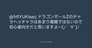 青山英樹 @aoyama_hideki – 18:32・2014年6月9日 2014 6/09 青山英樹 2014-06-09 @MIYUKIserj ドラゴンボールZのチャラヘッチャラはあまり複雑ではないので初心者向きだと思いますよ〜(ノ´∀`)ノ Source:https://x.com/aoyama_hideki/status/475933541197... text X Post 青山英樹 青山英樹 この記事が気に入ったら フォローしてね! Follow @OtokoTimes1988 よかったらシェアしてね! URLをコピーしました! 青山英樹 @aoyama_hideki - 18:29・2014年6月9日 青山英樹 @aoyama_hideki - 18:38・2014年6月9日 関連記事 Artist 青山英樹 1986.08.29