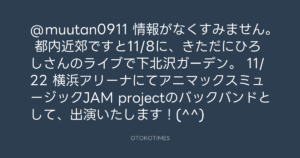 11/22 横浜アリーナにてアニマックスミュージックJAM projectのバックバンドとして、出演いたします!(^^)
