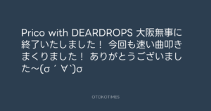 青山英樹 @aoyama_hideki – 21:41・2014年11月11日 2014 11/11 青山英樹 2014-11-11 Prico with DEARDROPS 大阪無事に終了いたしました! 今回も速い曲叩きまくりました! ありがとうございました〜(σ´∀`)σ Source:https://x.com/aoyama_hideki/status/532151249026... text X Post 青山英樹 青山英樹 この記事が気に入ったら フォローしてね! Follow @OtokoTimes1988 よかったらシェアしてね! URLをコピーしました! 寺岡呼人 @yohito_teraoka - 14:34・2014年11月11日 寺岡 呼人 @yohitoteraoka - 23:16・2014年11月11日(IG post) 関連記事 Artist 青山英樹 1986.08.29